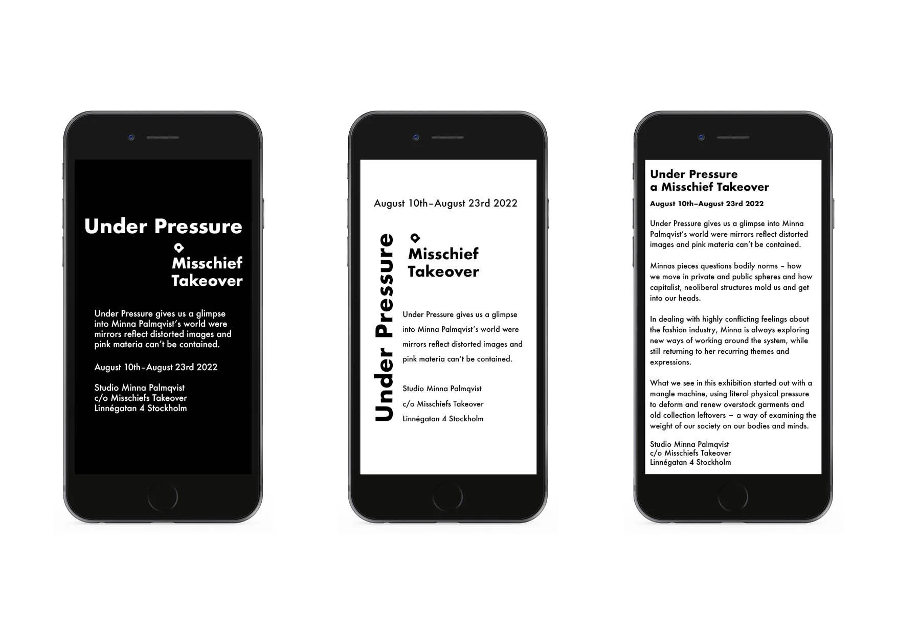 Flyern ska framsida, baksida samt exempel på hur en mobilversion skulle kunna se ut.